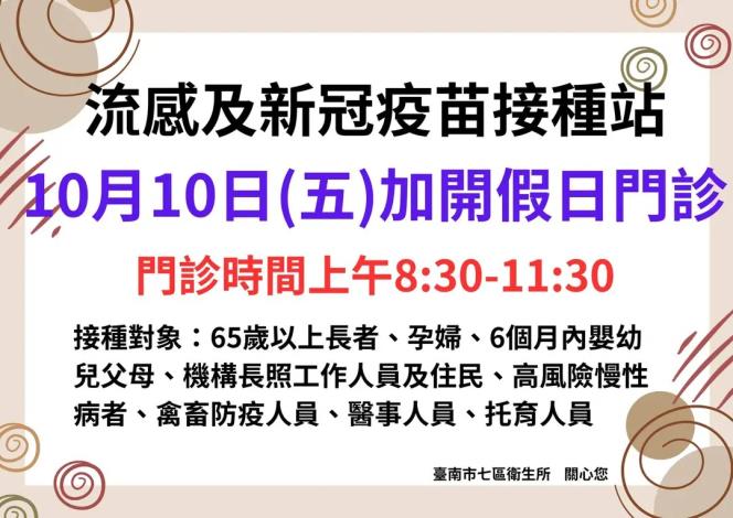 本所於114年10月10日上午8:30-11:30加開流感疫苗門診